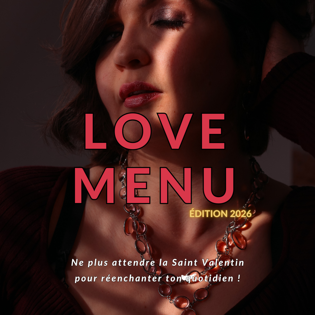 Ta vie intime a tendance à figurer sur ta to-do list...mais en toute fin ? Tu as la sensation que tu n'as - juste - pas le temps d'y consacrer du temps et quand tu y penses, tu as l'impression que tu n'auras jamais assez de temps pour. Découvre l'édition 2026 du LOVE MENU qui va te transmettre mes meilleurs conseils pour réenchanter ta vie intime sans tout bousculer et en évitant perfection & frustration !